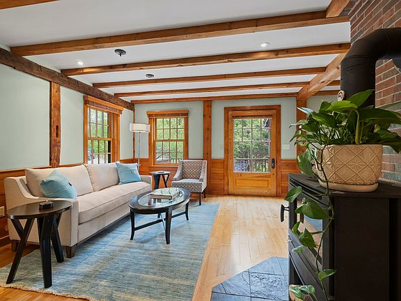 U/A - Seller will entertain Backup offers. An exceptional home featuring Marvin architectural windows, Baldwin & Emtek hardware and cedar exterior to showcase a commitment to quality and style. You'll be captivated by the exposed timber-framing and extensive custom finishes that define the interior's character and charm. The heart of the home is the updated gourmet kitchen with soapstone countertops, custom cabinetry and large center island, creating a modern yet classic look. A spacious addition with ¾ bath provides option for main level primary bedroom. The 2nd floor features flexible rooms with vintage architectural elements, adding a touch of nostalgia and timeless appeal. Architectural plans are available for ensuite primary and other improvements. The 3-season porch is perfect for enjoying morning coffee or evening relaxation while overlooking the beautiful landscaping, wildlife pond and ever-changing views of the adjoining conservation land. Nature lovers will delight in the property's location teeming with abundant wildlife, birding opportunities, and winter ice skating. Spacious mahogany decks, firepit area and hot tub, create a private oasis perfect for outdoor activities and entertaining. Reeds Ferry shed for extra storage. Don't miss the chance to own this enchanting home that perfectly blends historic charm with modern conveniences, in a picturesque rural setting, balancing country living with the convenience of being minutes to Newmarket's lively downtown.