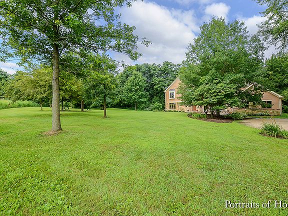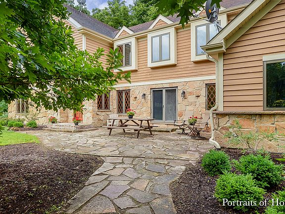 Enchanting home on large wooded lot with winding Big Rock Creek running through. Secluded calmness best describes the well designed view from every room inside this storybook home. Front prairie a canvas waiting to be turned into your garden. Hardwood floors, high ceilings and a floor plan that has a smooth flow. Walk out lower level great for entertaining with full bar and fireplace. Brand new carpeting!