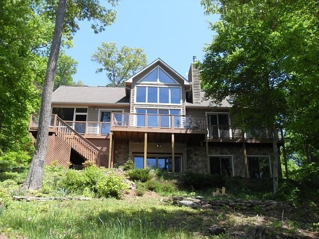 JUST REDUCED and SELLER WILL PAY $5,000 decorating allowance at closing! Amazing home sitting on private, very gently sloping wooded 1.5 ac. w/over 318 ft. of deep water frontage. Superb quality. Soaring ceilings. Stacked stone see-thru F/P from GR to MBR. New paint, carpet and tile. Wall of windows w/fantastic views. Huge screened in porch w/pass thru from Kitch. Lower level Family Rm,Rec Rm,BR, 2nd kitchen, sauna and steam rm w/walk-in tiled shower. Upper has 2 BR, w/BA and Bonus Rm. Lg 2 bay dock w/lifts and jetski ports. Furnishings are negotiable. Simply said Incredible .