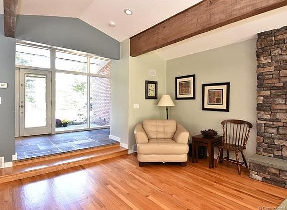 Beautifully designed, one of a kind, midcentury ranch updated for today's lifestyle. Set on nearly 3 acres adjacent to Sleeping Giant Park. Secluded yet within easy distance to everytingminutes to Quinnipiac, Yale, hospitals, shops and restaurants. Over 5000 square feet of clean lines and open space make for a very livable home and great for entertaining. Extensive windows on all sides provide sun-filled rooms and great natural light. A view from every room! The fireplaced great room flows nicely into the fully equipped gourmet kitchen. Hardwood floors throughout. Central air. Central vac. Generator ready. Four remodeled baths. Three fireplaces. Walkout lower level has a fun and unique fireplaced conversation pit, additional bedroom/sitting room/office, exercise/rec room and full bath. Versatile floor plan with a suite for the guest, in-law, teenager or au pair. A spectacular inground heated pool with spa makes for great summer fun and entertaining. Plenty of place to play or come home and get away from it all! A peaceful retreat to relax, unwind and soothe the soul.