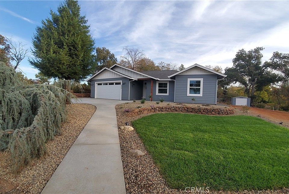 Looking for the ideal location for your new home? This could be the end of your search! Located on the outskirts of Paradise, off Neal Road, & a scenic commute to Chico or Oroville, this beautiful, brand new home is the one you will want to see. Gorgeous landscaped front yard with new sod lawn is enhanced by custom rock walls with a walkway leading to the covered front porch. Situated on a spacious .74 acre lot gives it a more private feel. An added bonus is a brand new septic system. This 3 bedroom, 2 bath home has plenty of charm, including a tiled entry & an open, split bedroom floor plan with large windows allowing for an abundance of natural light. As you walk through, take notice of the solid wood doors & vinyl plank flooring. A delightful kitchen has a large island, quartz countertops, tiled backsplash, stainless appliances & windows to view the early morning sunrise. The spacious living room with tray ceiling joins the dining area which has a large sliding glass door opening to the backyard patio. The indoor laundry room is conveniently located just off the hallway & includes a utility sink. The guest bathroom features a tiled shower with window, soaking tub, built-in linen closet, & quartz vanity. Both guest bedrooms face the front & overlook the beautiful landscaping. The master bedroom is tucked at the back of the home with large windows, a bonus closet space & a French door with built in blinds opening to the backyard. The large, master bath features a quartz vanity with double sinks, large walk-in closet with ample shelving, a tiled shower with glass doors. Large attached, finished garage with convenient side access door. There is also a bonus building in the backyard for extra storage space. With the beautiful Redwood tree, a stunning, weeping evergreen, Crepe Myrtles, Lantana, & Miniature Olive Trees, this yard could possibly be a contender on the next Paradise Garden Tour! Drive by today & take a look!
