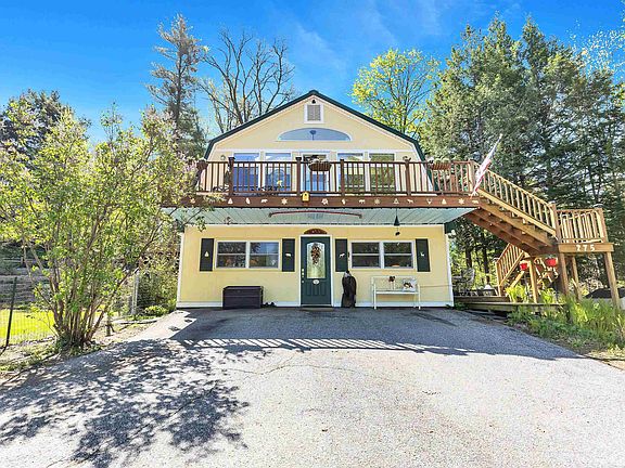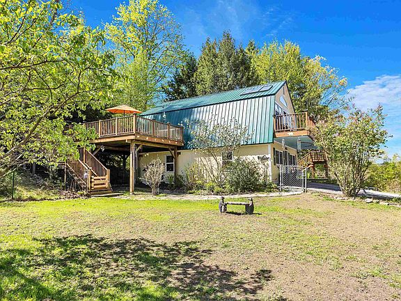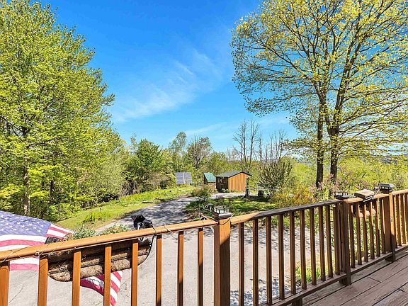 Secluded Eco-Friendly Retreat with Breathtaking Views! Nestled atop 29 acres of forest and organic gardens, this hilltop gambrel offers panoramic vistas and eco-conscious living. Relax on the front balcony or decks, one wired for a hot tub, while enjoying the charm of this unique home. Inside, discover a lower level with living space, two bedrooms, and a utility room, while the upper level features a kitchen with new appliances, granite countertops, skylights, and a cozy living area. Heating and AC are provided by an energy-efficient heat pump, with optional propane or oil furnaces, and a whole-house generator ensures power continuity. For furry friends, a lower-level dog door and fenced yard offer safety, while the property boasts flowering perennials, fruit trees, a row barn with a horse stall and tack room, paddock, chicken coop, and storage shed. A commercial-sized garage with RV overhang completes the package. Conveniently located minutes from Rt 91, Dartmouth Hospital, ski resorts, and lakes, this property offers privacy and sustainability with modern convenience. Explore numerous trails and a small swimming pond amidst the tranquil surroundings. Ideal for those seeking a harmonious blend of privacy, sustainability, and contemporary comfort.