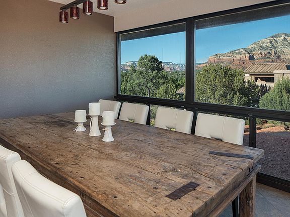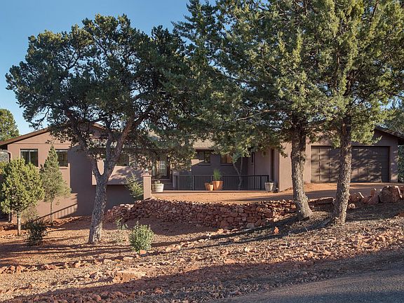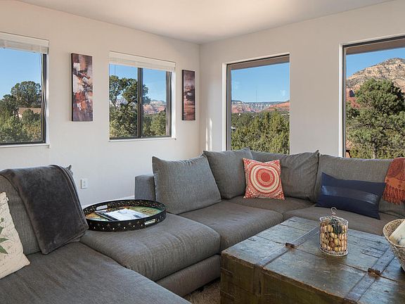 Panoramic red rock views front and back from this .4+ acre, hilltop home in one of Sedona's premiere gated neighborhoods. Fully remodeled with new roof, stucco finished exterior, newer kitchen and dining room connected to paver patios for outdoor entertaining, this spacious and open home offers many options for family and/or retirement with room for hobbies. There's a fully finished walkout downstairs for entertainment, extra bedrooms, workshop, or whatever your creative bend might be!