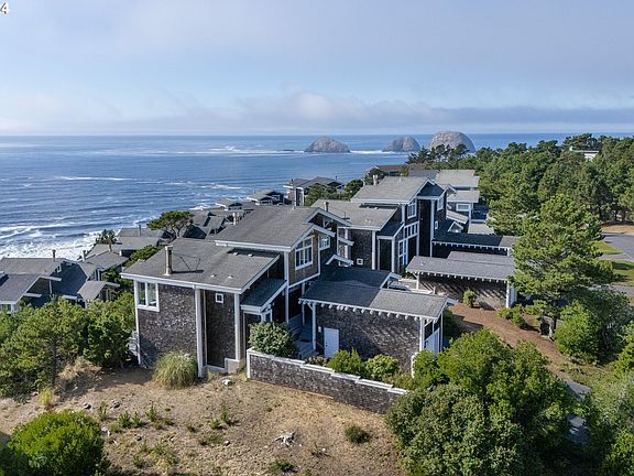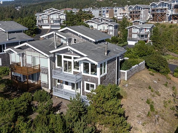 Sparkling, whitewater ocean views from almost every room in this elegant townhome located just one row from OCEANFRONT! Entering in from the covered porch, you'll go up a few steps to the living area, or down to the private bedroom area. The living room shows off soaring vaulted ceilings, a wall of windows perfectly capturing ocean views, cozy corner window bench beckoning quiet afternoons with a book, woodburning fireplace, and built-in shelves. Two Primary Suites with deck access on the lower level plus an upper sleeping loft/den offer room for family & friends. Exterior work has been DONE: roof, siding & decks repaired/replaced. The Capes gated community is in beautiful Oceanside, only 90 min from Portland, with private trails to beach, sport courts & more!