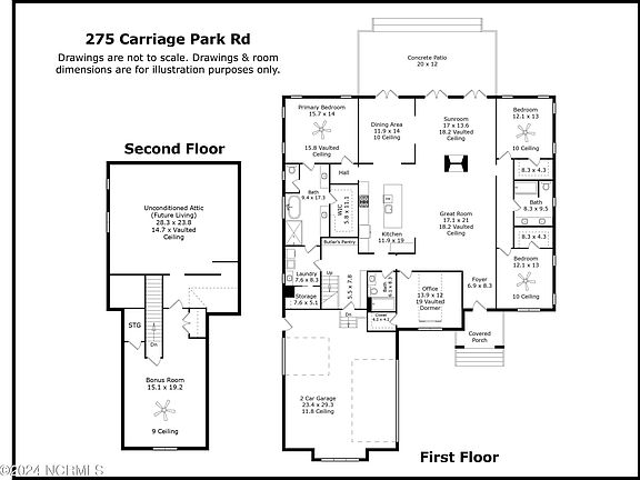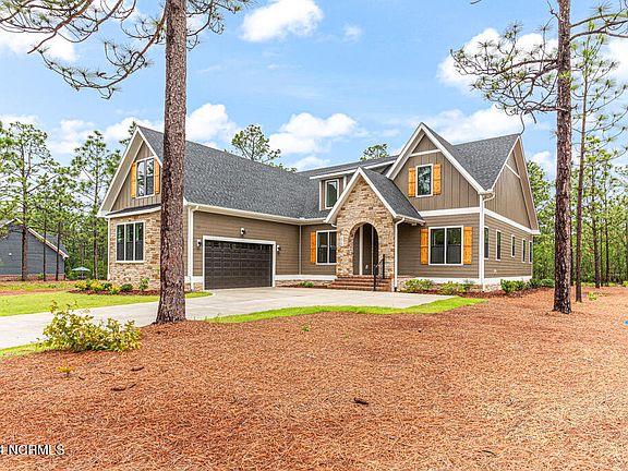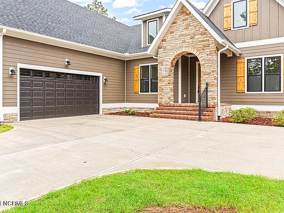 Druther Homes has done it again! This gorgeous home sits on 0.75 acre and offers 4 bedrooms, 3 bathrooms, a sunroom, and an upstairs bonus room! As you enter through the foyer, you will be mesmerized by the vaulted ceilings in the living room that are complemented with wood beams along the ceiling that continue past the double-sided fireplace and through the Sunroom. The kitchen is open to the living room, with a large island which serves as a gathering place. The kitchen has plenty of cabinet space, quartz counter tops, tiled hood vent, and a beautiful pantry. The dining room is located off the kitchen and the sunroom and overlooks the back yard. The primary suite is a true retreat, with a spa-like bathroom featuring a soaking tub, walk-in tiled shower, separate vanities, walk-in closet, private water closet and convenient access to the laundry room. The opposite side of the home offers two bedrooms that share a bathroom and offer plenty of closet space. The front office/bedroom has access to the third full bathroom. Upstairs you will find a large, finished bonus room and a massive walk-out attic that can be finished to add more living space! The garage offers two parking spaces and a golf cart bay. Druther homes offer more than a beautiful design with high-quality finishes and workmanship, they also invest in the unseen finishes, behind the walls. Spray foam insulation for energy efficiency, improved air quality, longevity, and structural strength. Encapsulated crawlspace for moisture control, mold and mildew prevention, improved air quality, energy efficiency and peace of mind. 2-10 home warranty provided, and a termite bond. Residents of Seven Lakes West enjoy access to a variety of amenities, including a private lake, with boat slips, beach and fishing pier, tennis courts, pool, community center, playground, ponds with turtle platforms and the dam with its walking, biking, and fishing opportunities. Don't miss your chance to own this stunning new home in one