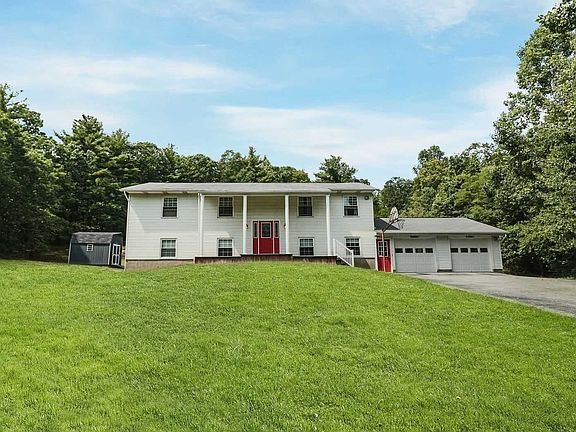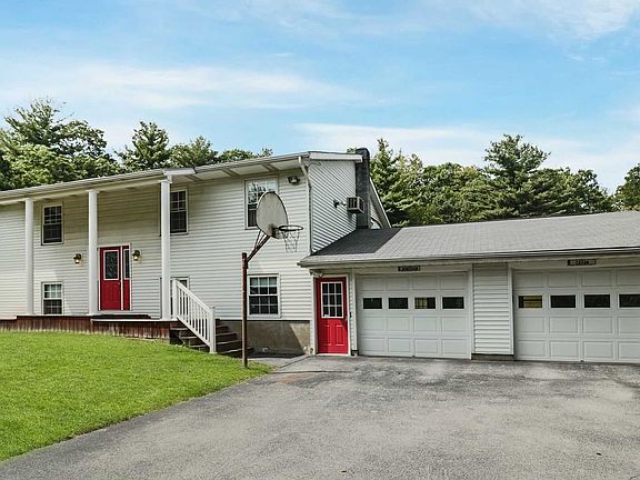Down a long private driveway lays a beautiful raised ranch with a large white columned entranceway. A spacious eat in kitchen and formal dining room great you as you enter the house. A living room with wood burning stove for cold winter nights. Principle bedroom with private bath. Kitchen leads onto a deck overlooking a private and spacious back yard. Two addition bedroom share a full bath. Downstairs rooms have their own private entrance. Full kitchen with bedroom and full bath. Downstairs living room also has a wood burning stove. Laundry room, large rec room and utility room are on the first floor. Attached 2 car garage. Privately situated on a quite road with close proximity to the Village of Stanfordville. This home also boasts a storage barn in the backyard. A complete floor plan is shown in the final photo.