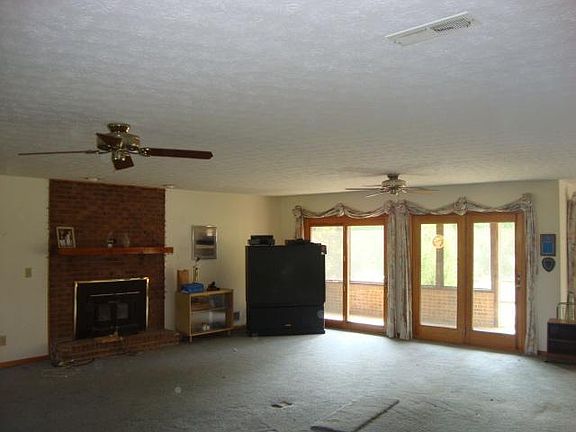 Crittenden Area....Very Private 59.7 acres,4 Bedroom True Sprawling Brick Ranch,3 Car Garage,Paved driveway, RV electric hookups,2 Full Baths,wood burning fireplace,Step Free Living,Open floor plan,Split Bedrooms,Screened in Porch,Kitchen Features Counter Bar & Island.