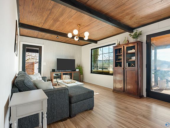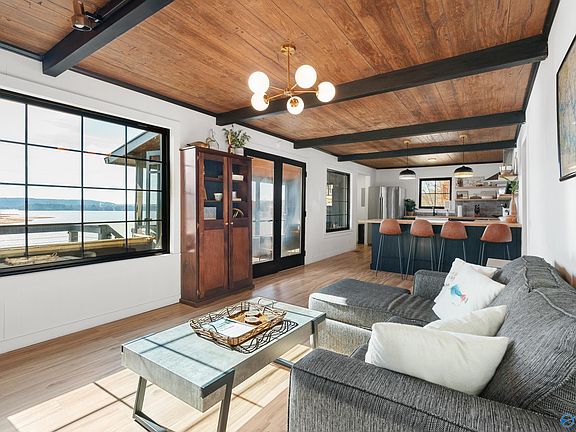 Beautifully updated Smith Lake bungalo right next to the Smith Lake Marina and Brothers Pourhouse & Kitchen restaurant. Easily accessible from 1-65, only 10 minutes off the highway. Year round deep water double slip covered dock for your boats and/or water toys. Great views of Goat Island and Smith Lake park. The interior was fully updated with an attractive modern kitchen, tiled bathroom, and open living room. This home presents an opportunity to own a vacation rental and long term investment as million dollar homes are being built on lots just like this one. Rare opportunity to own a home on the north east side of Smith Lake with great water.