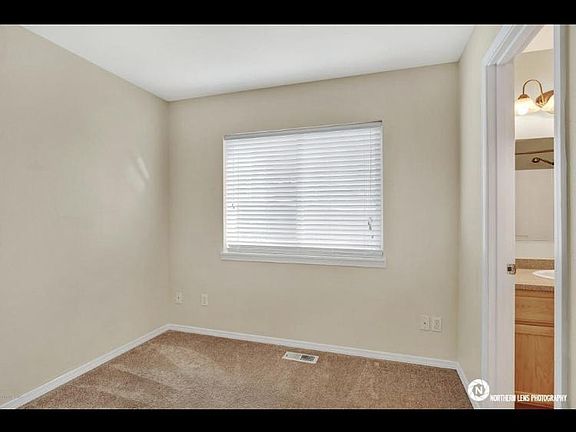 Better than new 2007 Townhome condo close to JBER, and Tikahtnu Commons Shopping. Huge Master Bedroom, Kitchen island bar, Vaulted Ceilings, high end flooring upstairs' tile floors down, newer interior/exterior paint, newer carpet, Gas Fireplace. Home sits up on a hill, providing views of Mt Susitna and Anchorage. Common areas include side yard and small area behind the unit.