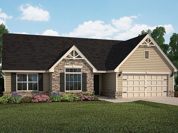 Part of the Georgian Collection, this classic, ranch-style home with split floor plan is a perennial favorite!. The foyer entrance begins at the galley entry hall and has an immediate opening into the kitchen. This kitchen, with cathedral ceiling and beautiful picture window, includes a breakfast area, an excellent working triangle in the kitchen, and a raised bar ledge that separates it from the great room. This great room has soaring ceiling heights and has a wall of windows for natural lighting. This split floor plan offers the additional bedrooms on one side of the home, separated by a full bath, and the master suite on the opposite side of the home. The master suite includes a walk in closet, and a bath with garden tub, separate shower, and double vanities.