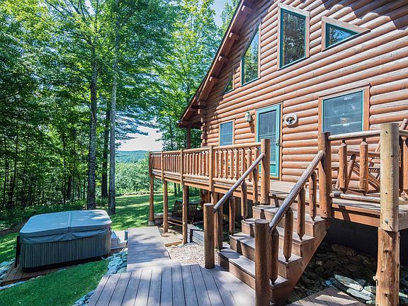 Exquisite custom log home with many high-end features including solid wood interior doors, Anderson and Pella windows exterior windows and doors as well as larch hardwood floors on the main floor. No details have been overlooked including extensive landscaping with stone walls, perennial gardens and hiking trails. The soapstone wood stove presents a cozy way to spend winters in this year-round retreat. The kitchen offers marble counter tops, stainless steel appliances and Hubbardton Forge custom lighting throughout. The full walk-out basement can be finished for additional living space with most of the work done with a full bathroom in place. Upgrades include new appliances throughout and high efficiency Bradford White heat pump water heater with 3 modes for maximum energy savings. Also in place is a Sof-Tek water softener system. The oversized 3-car heated garage with hot water supply offers additional space above that can be finished as you like!! Located between Middlebury and Rutland you are minutes to everything Vermont living has to offer in our fabulous lake region. Killington is only 40 minutes away!! Come see this beautiful oasis hidden in our green mountains today.