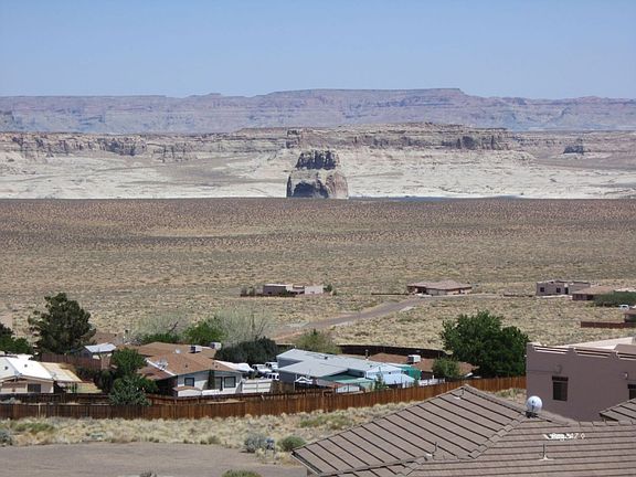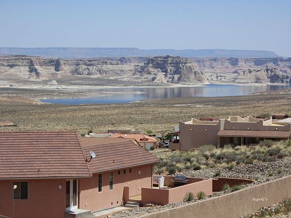 PRICE REDUCED! Enjoy breathtaking views of Lake Powell, the Kapairowits Plateau, Navajo Mountain, and surrounding rock formations from this two story patio home high on the hill in Greenehaven. Step into the spacious living room with floor to ceiling picture windows to take in the view. Dining room with sliding glass door that opens to the upper deck. The downstairs master bedroom has walk-in closet and sliding glass door that opens to the backyard patio. Second bedroom and full bath downstairs. Half bath upstairs. This unit has neighbors on both sides which saves on heating and cooling costs. Use as your own residence or investment property as short-term vacation rentals are allowed. Greenehaven is a dark sky community with no street lights so you can enjoy star-gazing from your own private deck. Just a short drive to the boat launch ramps on the lake. The town of Page has schools, shopping, restaurants and entertainment, and medical facilities just ten minutes away. Tenant in place until October 31, 2018. Purchase of property subject to current lease.