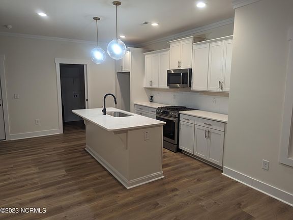 Desirable location! Near downtown Southern Pines, find this new construction modern cottage perfectly charming. Starting with a welcoming front Southern porch, make your way inside to find this comfortable floor plan ensuring the home functions efficiently and does not waste any space. Enjoy this relaxing living room with a fireplace which leads through the dining area and into an open kitchen featuring a kitchen island, beautiful appliances, separate pantry. The owner's suite is on the main floor along with an additional bedroom and mud room/laundry room with a second entrance to the back yard. Upstairs is the third bedroom, full bathroom and an amazing bonus space! In the back you will find another covered porch for outdoor enjoyment. Included is a carriage house for a multitude of uses.