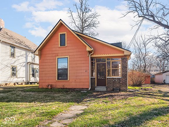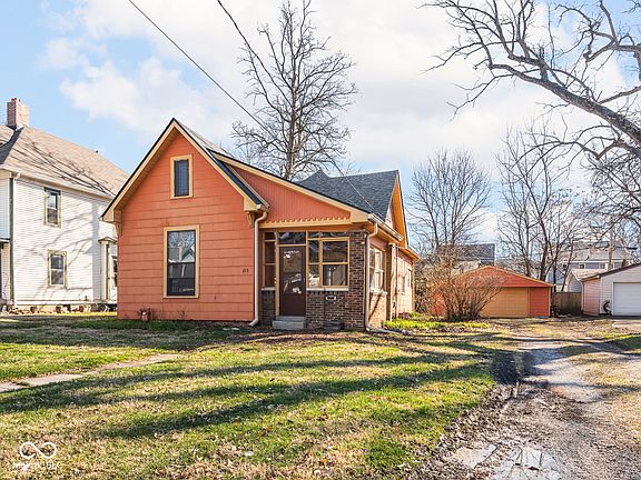 IRVINGTON // A unique opportunity awaits in the heart of Irvington! This adorable apricot cottage is located just off the South Circle, a hub for community concerts and events, and is only blocks from Strange Bird, Irvington Books & Vinyl, The Snug, and all the best local spots for shopping and dining in downtown Irvington. The main floor of the home features soaring ceilings and large windows, a spacious dining room, living room with a decorative fireplace feature, and a bedroom. The kitchen is suprisingly roomy and has classic black-and-white checkered flooring, and the full bathroom has charming cabinetry. A sweet enclosed front porch makes for a cozy sitting space, and a small back enclosed porch doubles as a mudroom and leads to the backyard and 2-car garage. Upstairs offers tons of storage and flex space, currently a loft style bedroom with a closet and storage room, but could easily be reimagined for an additional bedroom and/or bathroom. While livable currently, with some repairs and updates, this solid home could truly shine and is perfect for the savvy homeowner looking to add their own touch to maximize a home's potential. Major bonus: the roof and gutters are less than 2 years old and the chimney has been rebuilt!
