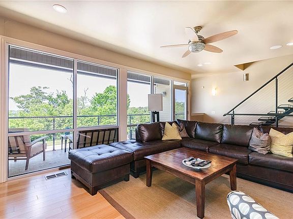 Absolutely gorgeous, modern townhome in Abshier Heights, one of the most sought-after developments in Fayetteville! High on a bluff overlooking the city, this home boasts an incredible location with unbeatable luxuries. You'd be hard-pressed to find another townhome so close to U of A with a garage! Epoxy floors here lead up to the second level, with the open living, dining, and kitchen area with floor to ceiling windows and glass door leading to spacious balcony. All high-end, stainless appliances convey. Granite tops throughout. Custom metal fabricated stairs with cables to the upper level with large bedrooms and stylish baths. This home is a must see!
