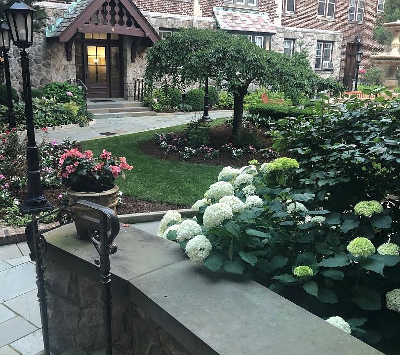 Located on the East Hill of Englewood, your first step onto the attractive bluestone walkway at the wrought-iron gates of the courtyard will transport you to another time as the historic fountain from Italy comes into center-view, perfectly situated in a beautifully manicured courtyard.This top-floor corner residence in Tudor Hall is enriched by Englewood's prewar architectural heritage and history. A Classic Five design enhanced with elevator, updated kitchen with window, and a new full bathroom. Lofty entryways lead to gracious living spaces, 2 spacious bedrooms, formal dining room, formal living room, custom built-ins, 9-foot ceilings, ample closets, and refinished hardwood floors throughout. And plenty of natural light comes into this unit from the southern exposure. This is an ideal classic penthouse combining formal prewar charm and modern conveniences with public transit only blocks away. Welcome home.