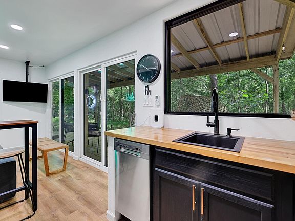 Discover this hidden gem! This updated and contemporary one-bedroom, one-bathroom container home, sits on 4.5 beautiful wooded acres. The home is designed to bring the outside in, featuring sliding doors and large window that frame picturesque views of the property. Relax on the covered back deck or sit around the fire-pit as you soak in the peaceful surroundings. Located just a short drive to the charming town of Livingston for dining and shopping, close to Lake Livingston for fishing and only 15 minutes from Naskila Casino. With a septic system already sized for a larger home, you also have the option to build or expand. This property makes an ideal weekend escape and with its success as a short-term rental, the new owner can seamlessly continue generating income.
