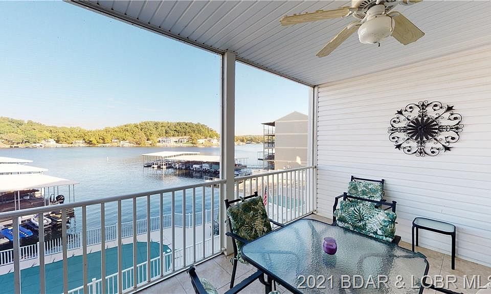 Prime location walking distance to the Bagnell Dam Strip! Ozark Yacht Club is right next door! Newport is a smaller quaint complex that rarely has units for sale. This 4 bedroom, 4 bath furnished unit is offered turn-key with a 16x40 slip with a 10,000lb lift and a bonus 12x32 slip. This unique floorplan features 2 primary lakefront bedroom suites, 2 electric fireplaces, a large bar/entertainment area on the lower level, screened patio/deck areas on each level with serene lake views. Spacious 2600 sq ft of living space and ample storage areas. Walk-out lower level patio makes it easy to access the pool and get to your dock. Elevators are available for your convenience as well. Great vacation rental opportunity for the investor. This condo sleeps 10 comfortably! Lower level leather sectional is a sleeper sofa.