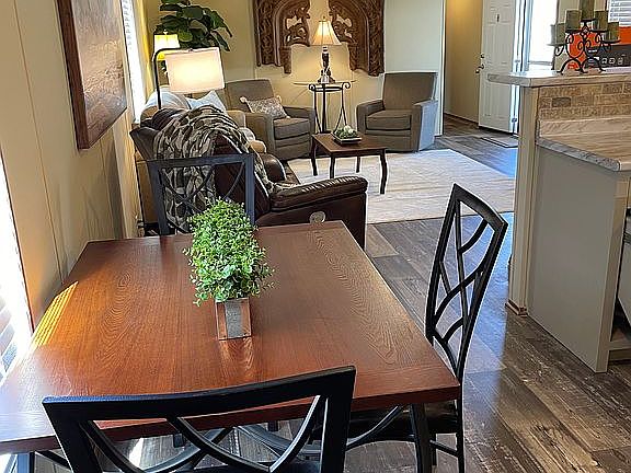 Beautiful home updated and remodeled and ready for immediate move-in. Updates include newly designed kitchen w/ custom cabinets & breakfast bar, new stainless appliances, fixtures, flooring, paint, new toilets, hot water heater & more! Available Furnished or unfinished. Located in quiet safe established mobile home community, Lot rent $350. Per Month includes lawn maintenance. Private fenced area behind.