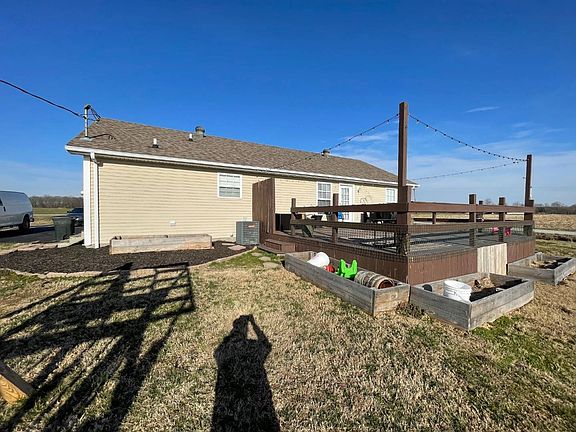 This vinyl sided ranch style home has 3 bedrooms and 2 baths. Home features a large master bedroom with attached bath and walk-in closet. A large open living room with dining area adjacent to a fully equipped kitchen with custom cabinets. Home features tile and laminate flooring throughout. Home is sitting on a corner lot with a large deck out back, 5 raised garden beds, and a detached storage shed. Home is located close enough to town for convenient access but far enough out to enjoy country living.