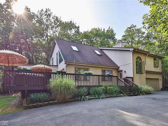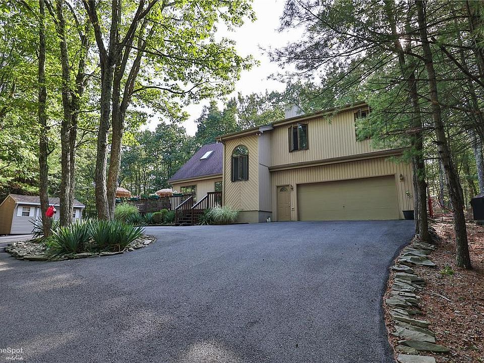 Peaceful, private, & tranquil ... describes the setting of this 5 BR, 3.5 BA contemporary home nestled on 1.08 wooded acres in Teaberry Hill Estates. The open floor plan, spacious rooms, & 12’ vaulted ceilings add to a sense of freedom and comfort, while large windows & skylights flood the home with natural light. A casual living room, with wood burning fireplace, complements an open dining area, perfect for small or large family traditions. An addition to the loft in 2003 features a spacious sitting area, 4 equally sized bedrooms, and full bath. The spacious main floor master BR suite features a WIC, bathroom with tiled shower and floors, and jetted tub. 1st floor laundry, 2-car built-in garage & a long winding driveway. A wood deck spans across the front to the side of home perfect for grilling and enjoying the peace and privacy! Minutes to Beltzville Lake, Blue Mtn. Ski, Penn’s Peak, and convenient to the PA Turnpike for easy commuting to the Lehigh Valley or NYC. SHOWN WITH PRIDE!