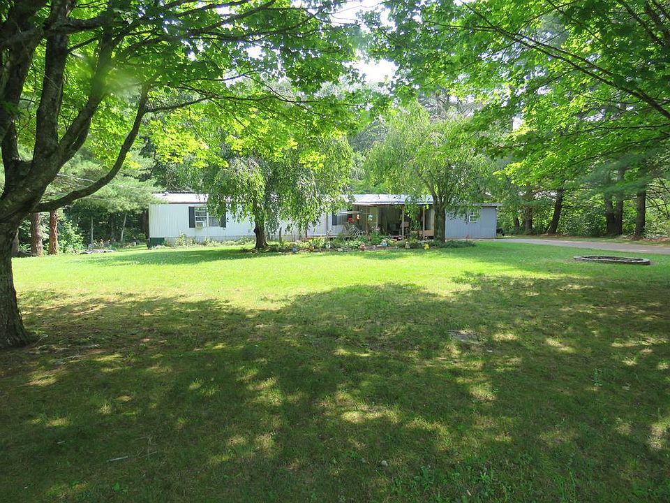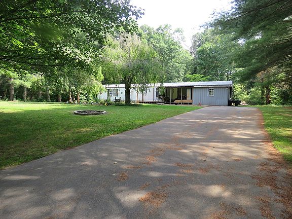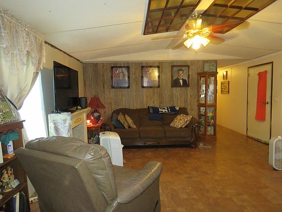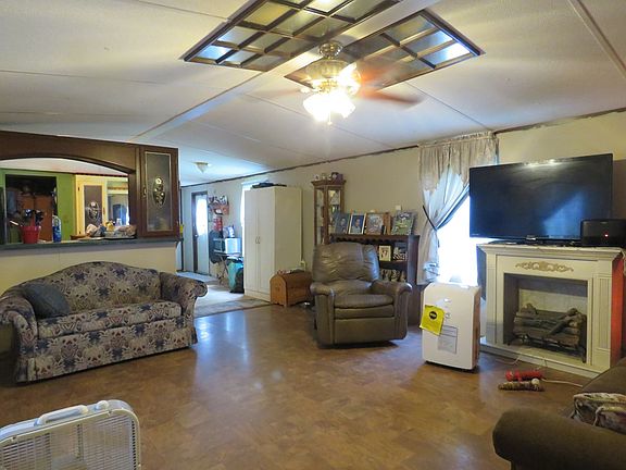 One level mobile home on over 1.5 acres minutes from I 40. You have a completely level lot that is mostly cleared with some meadow like trees. Walking up you have a covered front porch with extra storage space. Once inside you have a split floor plan ready to make your own! On the right side of your home is your living area and two guest bedrooms with a full bath. On the left side of the home off of the living area is your kitchen, laundry room, pantry space, and primary suite with ample space. In the backyard you also have a shed with an attached carport for outdoor machinery. The property is being sold as is and can only have a cash or conventional loan. Not on a perm foundation.