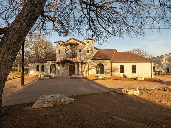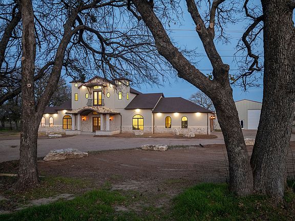 Discover your dream oasis in this stunning Spanish-style home nestled just outside the city limits of Springtown. Set on 2.33 acres, this exquisite residence boasts 5 bedrooms, each with its own ensuite bath, offering ultimate privacy and comfort for family and guests. With a generous 4,228 square feet of living space, the open floor plan is adorned with custom woodwork and beams, creating an inviting atmosphere centered around a beautiful wood-burning fireplace.