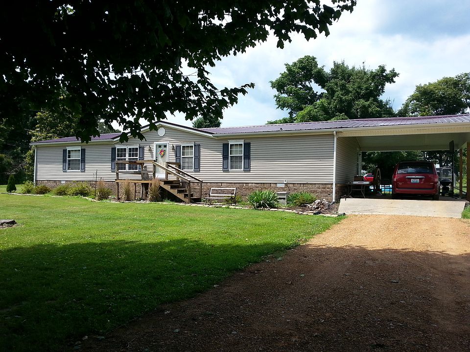 For Sale: 3 bedroom 2 bath double wide on brick foundation approximately 1750sqft. 3 walk in closets. Utility room with outside entrance. Located in Fairdealing, 10 minutes from city of Benton and 10 minutes from 5 public boat ramp on Kentucky Lake. Central heating and air. Two 250+ propane tanks for LP heat. New metal roof and covered carport in 2013. On 1 acre lot with small storage building. Asking $79,900 Contact: Kelly Lassiter 270-994-7600