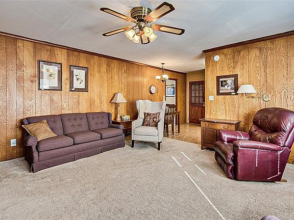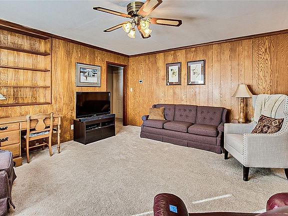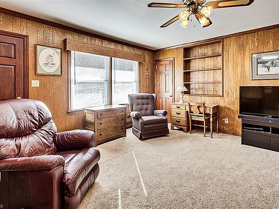 Beautifully maintained brick ranch! Nice den with built-in shelving, huge living room has a dining area. Kitchen has oak cabinets & all appliances remaining, including refrigerator. Primary suite features a renovated full bath with ceramic shower. Hall bath has also been renovated with granite top vanity & tub/shower with ceramic surround. Laundry room has plenty of storage cabinets w/utility sink & 17x12 porch off single garage, replacement windows, & nice unfinished basement gives ample space for storage! Great back yard with garden area & detached double garage. Great location!