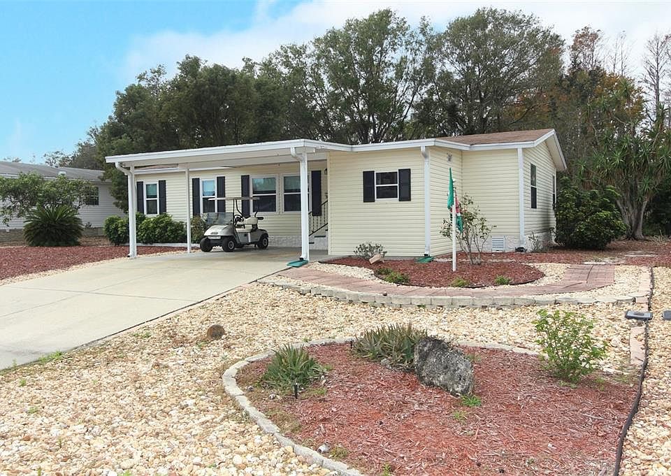 Check out this well maintained 3 bedroom 2 bath home located in the sought after 55+ community of Polo Park. Situated on the 3rd hole of the Polo Park golf course and backing up to conservation, this lovely furnished home boasts a spacious floorplan, walk-in shower in the master bathroom, includes all appliances, has an eat in kitchen, indoor laundry room, covered parking and a storage shed/workshop. Enjoy relaxing sunsets from the enclosed rear patio, or have fun utilizing any of the numerous amenities Polo Park has to offer. With a golf course, 2 clubhouses, 2 community pools, tennis/pickleball courts, library, shuffleboard and a fitness center, you almost never have to leave the community. This home even includes a golf cart for easy access to all of those amenities. And Polo Park is conveniently located close to Walmart, Lowes, Publix and numerous other stores and restaurants, and is just a short distance to Disney. This home has created many wonderful memories over the years and if you are considering a home in a retirement community, consider this lovely home, and start making wonderful memories or your own.