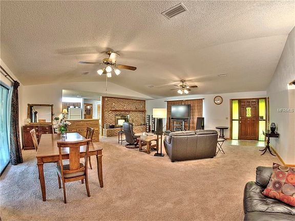 Custom built all brick home on 9.4 acres of pristine land with a 1 acre beautiful pond and is zoned agriculture so bring the horses???all located only minutes to historic Deland and the beaches. Very private and quiet location with plenty room to enjoy the wild life and natural setting. This quality built home has an open great room floor plan with a vaulted ceiling and a brick wood burning fireplace. The eat in tiled kitchen has plenty of cupboard and counter space with all appliances included and an adjoining office space that leads to the oversized inside laundry/utility room. Every bedroom has its own full bathroom???perfect for those visiting guest. There is also a huge 60x12 trussed in rear screened porch with a knee wall overlooking the elevated 31x11 wood deck and the pond. Along with the oversized 2 car side entry garage with its own ?? bathroom???you will find several other attached workshop areas and plenty of storage room. The property is partially fenced and includes a newer roof and A/C system and new carpet and tile throughout!-RECENT APPRAISAL ON FILE.