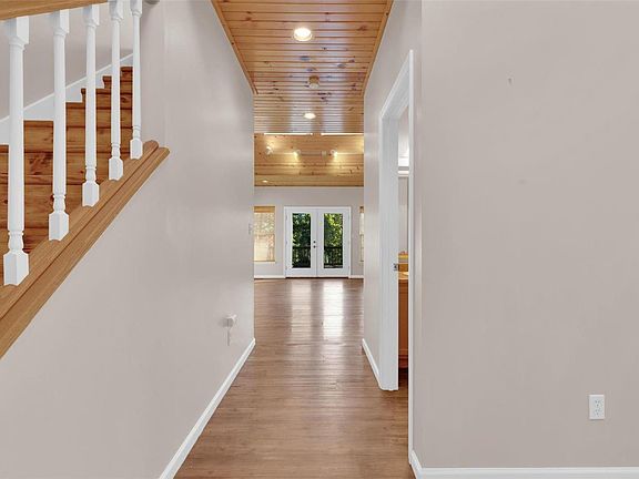 Custom Built 5 Bed 3.5 Bath Home situated on 3 lovely acres, 4 Car O/S Garage, partially wooded lot w a shared stocked pond! Many unique aspects making it perfect for both privacy/entertaining. Cul de sac location. Pull into the circle drive & take in the setting! Wrap around covered porch welcomes you home. 2 Story Entry Foyer & be WOWED by the Knotty Pine & 22 Ft Ceilings & View through The Wall of Windows to The Backyard Retreat! Large Kitchen w Plenty of Storage, Triple Bowl Sink, Bay Area for Breakfast Table, Formal Dining Rm. Main Flr Primary w Crown Molding & Access to Rear Deck, Deluxe Walk-In Closet, Luxury Bath featuring Dble Sinks, & Marble Shower. MFL. Upstairs 2 Beds, Full Bath w trestle hallway overlooking the Great Rm. Walkout LL offers more living space perfect for In-Law Quarters/Teens. Rec Rm w Knotty Pine Walls, Full Kitchen, 4th-5th Bed & 3rd Bath. Cover Patio. Roof July '24. High Efficiency Furnace/Heat Pump '22. H20 Heater '17.Public Water/Paved Roads.