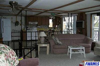 Unique contemp. style home, many updates including roof, siding, windows, berber carpet & vinyl. 2 1/2 BA, extra lg. BR up. 133+/- frontage with great sandy bottom, dock stays & shed. Deck off of kitchen. Many furnishings staying with home check with agent for list. Refrigerator in storage room staying (not in kitchen)