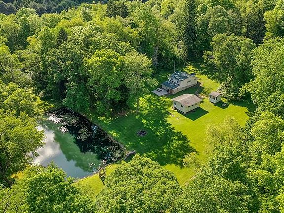 Privacy and nature await! This cute 2 bedroom home is situated on 5.8 lush acres with an abundance of wildlife and a pond! Six car 34x40 detached garage equipped with electricity and a heated floor! The home features a large, fully equipped eat-in kitchen, living room, 2 bedrooms a full bath on the main floor, a huge game room downstairs and another bathroom. There is an additional room downstairs with access to the back yard- great for storage or a workshop! This is a one of a kind property! Located conveniently within minutes of local shopping and dining yet tucked away for maximum privacy. Opportunities are endless with the 3 additional building on the property: a large bunk house building, summer kitchen house and kennel building(with new roof) could be used to suite your personal needs!