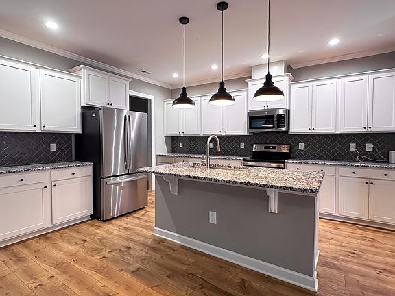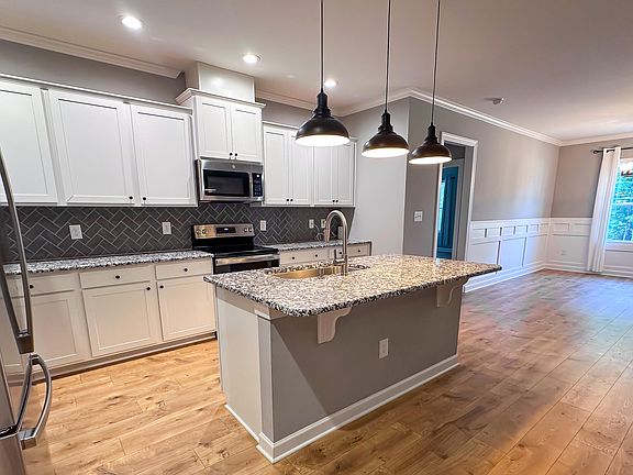 LIKE NEW!!! Step in to this 2023, quality built, RANCH floor plan. Less than 10 minutes to Flowers Plantation and the new Waterfront District. This large open concept, 4 bedroom, 3 FULL bathroom home, is situated on close to ONE ACRE. The main bedroom features a double trey ceiling, a stunning bathroom with a WALK IN main closet that has CUSTOM WOOD SHELVING! The kitchen offers granite countertops, white shaker, soft close cabinets, crown molding, recessed & pendant lights, herringbone backsplash, and SS appliances: electric range, dishwasher, microwave, and refrigerator. Enjoy evenings on the rear COVERED, SCREENED in PORCH. The home is fenced on both sides up to the tree line. 50 amp RV hook up. Hurry, this won't last long!!