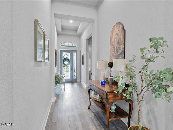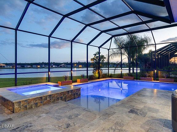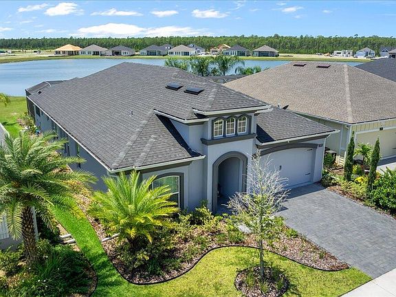 Welcome to your Florida pool home, where breathtaking water views and unforgettable sunsets await. This exquisite residence is designed with meticulous attention to detail, featuring an in-ground pool and spa that seamlessly blend indoor and outdoor living spaces, 4 bedrooms and 3 full bathrooms. Enjoy the luxury of a summer kitchen, travertine decking, pocket sliding glass doors, all thoughtfully crafted to enhance your outdoor living experience. The heart of this home is the custom kitchen that offers quartz countertops, 42'' cabinets, soft close drawers, black stainless-steel appliances and a tile backsplash that beautifully complements the countertops. A classic farmhouse sink serves as a focal point, blending rustic charm with modern design. Pendant lighting above the island illuminates the space, making it perfect for both meal preparation and casual gatherings. You will be impressed with the oversized owner suite that has been meticulously crafted for comfort and style. The expansive walk-in closet features custom shelving, providing ample storage and organization options for all your wardrobe needs. Don't miss the owner's bathroom featuring double sinks, quartz countertops, and a walk-in shower. This waterfront pool home offers an unparalleled blend of elegance, comfort, and convenience. Additionally, you will be pleased to know that the Mosaic community offers resort-like amenities including a fitness center, swimming pools, playgrounds, an event lawn and much more! This pool home is move-in ready, waiting for its new owner to enjoy everything Florida has to offer.