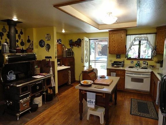 This is a wonderful horse property w/a 2 family set-up. This is a classic ranch home & beautifully maintained. So much to offer starting w/1800SF attached shop, 20X30 metal RV carport, 27X22 barn w/9FT overhang, 16X48 4 horse stall barn 13X15 ea stall w/concrete floors, 43X26 garage w/3 bay doors, 6 bay hay barn 27X72 holds 80-100 ton, 60' round pen, arena, 2 wells one is 45gpm & a 1248sf 52X24 manuf home w/dble garage. Main home: 3bd 2ba all rms w/walk in closets, master bd has a slider to the covered Trex deck & hot tub. All window treatments included & don't forget the high ceilings, solar tubes & ceiling fans. Hunker down in family/living rm & keep toasty w/a Hampton woodstove on those cold winter days. The oak cabinets were milled from property & have country details. The antique woodstove in the kitchen can cook up some great meals & the lg garden you'll have plenty of storage in your HUGE pantry & don't forget to relax in the covered patio with coffee or a nice cold one!