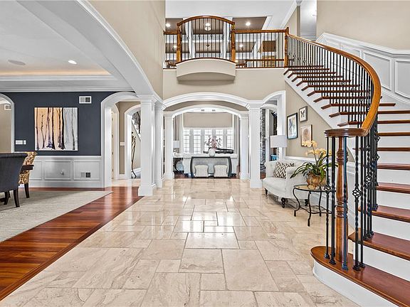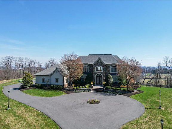 Absolutely stunning and private 26.61 acre estate with over 9,000 sq ft of living space, 6 bedrooms, 6.5 baths, a heated in-ground infinity pool & hot tub. Additionally, there is a spectacular guest house with kitchen, living and dining areas, full bath & bedroom. The Luxurious first floor includes the primary bedroom with gas stone fireplace and access to the rear patio overlooking the pool, as well as an amazing chef’s kitchen and large office. 2nd floor has generous 5 bedrooms including 3 ensuites. 5 car garage, whole house generator plus so much more. Too many amenities to list!