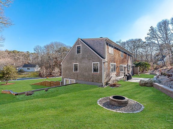 Renovated bucolic 3 bedroom Cape, just under an acre, nestled on the fringes of the private Cummaquid Golf Course in the established Cummaquid Heights association. This lovingly updated home greets you at the front door with an inviting foyer, a spacious living room with a gas stove, and refinished hardwood floors. The formal dining room presents with more hardwood floors and detailed wainscoting before emerging into the expansive kitchen with quartz counters, upgraded cabinets, a GE induction oven and a microwave/wall combo oven. The white washed brick background, arched built-ins, engineered floors, and long center island, sets off the kitchen with flare. The adjoining den with a wood burning fireplace and built-ins completes the design, separated only by sliders that lead to the backyard patio and fire pit. Two updated half baths and laundry area complete the first floor along with the primary suite, with its own fireplace, walk-in closet and full bath. The second floor has 2 generous size bedrooms, a home office, a full bath and an expansive attic storage room. The attached 2 car garage and unfinished walkout basement with fireplace holds even more possibilities.