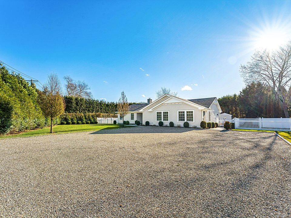 Beautifully renovated in 2023, this traditional Hamptons-style three-bedroom, three-bath ranch offers 2,590 square feet of refined single-level living in Westhampton Beach. Timeless design elements and light-filled interiors create a relaxed yet elegant atmosphere throughout. The generous floor plan flows seamlessly, featuring inviting living areas, thoughtfully updated bathrooms, and a primary bedroom with a spacious closet. Outdoors, the backyard includes an in-ground pool and a separate shed, offering both outdoor enjoyment and practical storage. This move-in-ready residence captures classic Hamptons charm and comfort. The home is fully furnished and available for rent from May through September.