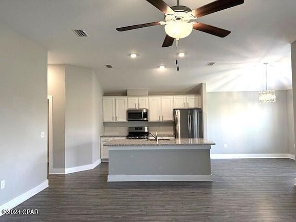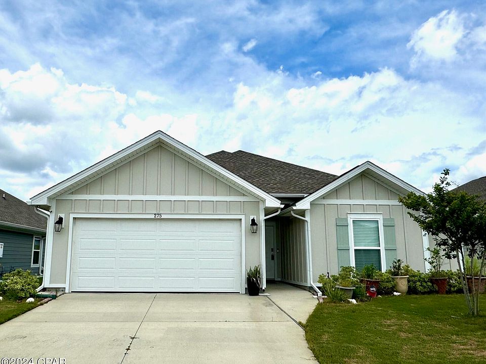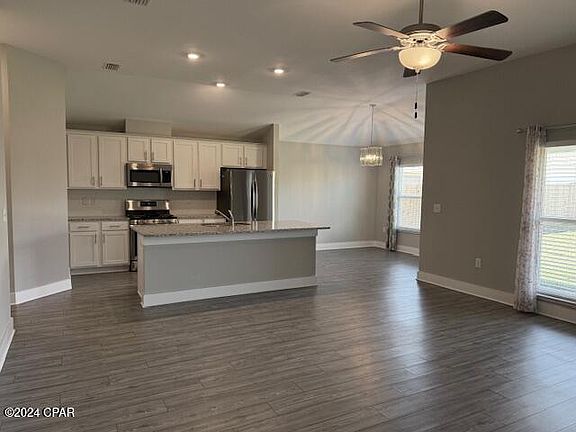 Park Place has a community pool, playground, sidewalks, community mailbox and lots of green areas. Move in ready 3 Bedrooms, 2 Baths, Large Living Room, Dining Area, Large Kitchen (gas range) with pantry, laundry room and is a Wonderful open concept floor plan. 10' high ceilings in the main living areas and a 9' tray ceiling in the master suite. Luxury Vinyl Plank floors, granite countertops, stainless appliances, gas range, open concept and so much more are found throughout the home. Hardi Board exterior on all four sides, Tankless Gas Water Heater, and a completely landscaped yard with a sprinkler system. Home has innovative technology and convenience with a SMART Things hub, a Ring security doorbell, a Samsung tablet, and a Nest energy-efficient thermostat. Easy Commute to Tyndall AFB