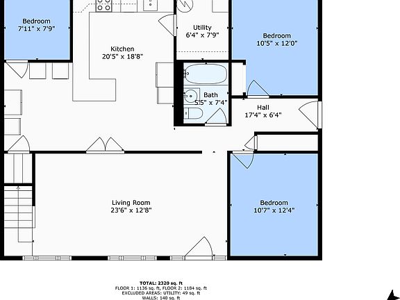 - Total interior livable area: 2,320 sqft