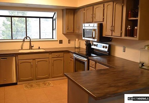 Wow! 4 Bedrms, 2.5 Baths, 3 Car Garage on a .54 acre in quiet cul-de-sac lot that backs to Mogul Park open space. Updated kitchen with Corian counters and sink along with stainless appliances including refrigerator & tile floors. Spacious master with jetted tub & walk-in closet. New Pellet stove. Vinyl dual pane windows. RV access. Horses are welcome. Peaceful views overlooking hills and open space of Mogul Park with tennis courts, kids playground & dogs can run free. Country feeling but close to town!