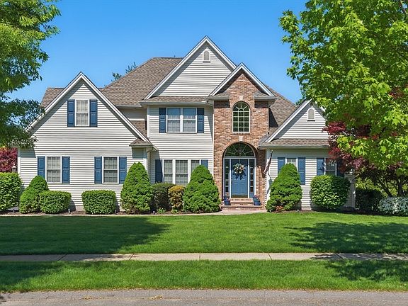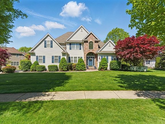 This beautifully maintained Colonial offers a luxurious blend of comfort, elegance, and high-end finishes throughout its spacious and thoughtfully designed layout. The open floor plan is perfect for modern living, featuring a soaring family room with cathedral ceilings, a cozy gas fireplace, and elegant architectural details like archways and columns connecting to the formal dining area. The eat-in kitchen is a chef’s dream with direct access to the fenced backyard oasis. Enjoy the ease of a first-floor primary suite, offering a serene sitting area and a spa-like bathroom retreat. A convenient half bath and laundry room round out the main level. Upstairs, you'll find three generously sized bedrooms and a full bath, perfect for family or guests. The finished lower level is simply breathtaking, featuring a second gas fireplace with a stone surround, high-end finishes, and an impressive wine room. Highlights include, fenced backyard with lush landscaping and grilling station - waterfall.