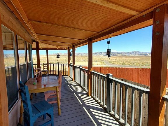 This beautiful custom 1997 Palm Harbor Sedona Model home is one of the nicest homes in the area & ready to be your Lake Powell home. Pride of ownership shows with all the improvements. As you walk up to the home you immediately notice the beauty of the yard & wraparound deck. That deck is one of the best & most used in Lake Powell Estates & takes in views of Lake Powell & the surrounding cliffs, great for entertaining, morning coffee or just relaxing. Sunrise - sunset, everything looks different and Greenehaven is a "Dark Sky" community so stargazing is incredible. The home is 1,540 SF of beauty that has a living room with surrounding windows to let the light & beautiful views in plus family room w/pellet stove, formal dining room, very large kitchen, two bedrooms, two full bathrooms & a laundry/craft room. The yard is not only beautiful but easy to maintain so you will have more lake time. There is also a large double garage & extra parking for your lake toys. RV hookup service & security system with a hard drive round out the pluses of this home. Hot tub will be staying.Take a look at the photos and call for a personal showing. A one (1) year Home Warranty is include
