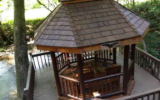 REDUCED PRICE! Rushing Big Creek and end of the road privacy in Aska Adventure Area! This spacious log cabin home is a step into paradise and features 3BR and 3BA, ( one ea level) GR w cathedral ceilings, stone FP, and floor to ceiling windows. The GR opens to a hugh deck overlooking the creek, just perfect for entertaining. Theres a family room, bonus room/office, BR and BA on lower level! Awesome landscaping and access to the creek is made easy with steps down to the waters edge, where theres a gazebo right on the noisy creek! Master suite is on upper level with a full bath and private screened porch off the Ma. BR. Additional storage outbldg and detached carport with end of the road privacy and in a special location near USFS and Toccoa River.