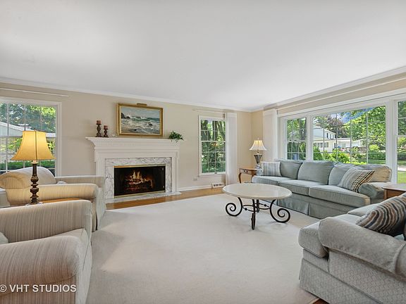 Front porch charm welcomes you to this fabulous Fox Point home set on prime half-acre lot! You will fall in love the moment you step inside this wonderful second owner home (wow!) that has been lovingly and meticulously maintained with a spacious floor plan and generously sized rooms ideal for family gatherings and entertaining. An elegant, cascading staircase and beautiful hardwood floors greet you as you enter the foyer flanked by the formal living room with gas fireplace and dining room with picturesque views of the covered porch. The heart of the home features a chef's delight kitchen with Kitchen-Aid appliances, tons of counter and cabinet space and a large eating area with sliders to the patio. The adjacent family room has custom built-ins, a cozy fireplace, and French doors into the office/sunroom. Ideal for work from home days, the light filled office has on trend exposed brick and built-in cabinetry. A powder room and large laundry room are also found on the main level. Sprawling second floor is simply incredible with 5 bedrooms and 4 full baths! Large primary suite has two walk-in closets and a luxe ensuite bath with skylight, Kohler whirlpool tub and dual vanities! Completing this well-appointed level are four secondary bedrooms with one ensuite and two sharing the hall bath as well as a 5th bedroom suite with sitting area and private bath perfect for guests, in-laws or au-pair. Finished lower level is sure to be a hit with all ages with rec & game areas, wet bar, and ample storage space. Enjoy dining al fresco and warm summer days on the large patio offering postcard perfect views of the lushly landscaped rear yard with large grassy area perfect for playing, mature trees and a tranquil pond at the back of the property. Enjoy all the amenities of Fox Point living including community pool, tennis courts, lake and many social activities. Excellent location allows you to enjoy hiking / biking in nearby Cuba Marsh, shopping & restaurants at Deer Park Mall, Lake Zurich or downtown Barrington. Just steps from award winning Barrington schools and minutes to Metra, library and park district makes this home an A+!