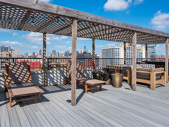 Furnished rooftop deck with breathtaking views of Manhattan and Brooklyn skylines
