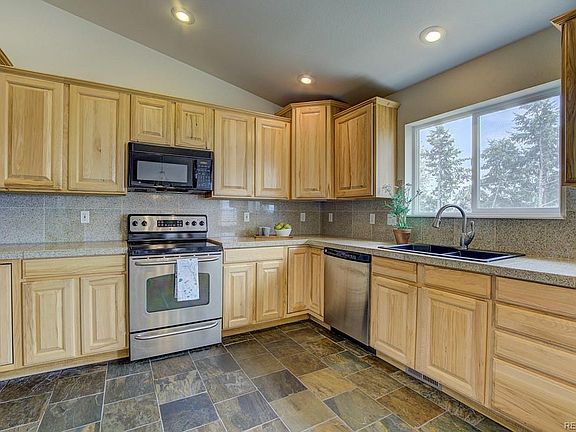 This semi-custom mountain home was crafted by one of the Tri-lakes' finest builders! Vaulted ceilings on main level! Large kitchen w/breakfast nook, stainless appliances, luxury slate floors, granite counters, pantry & pretty hickory cabinets. 3 bedrooms upstairs including spacious master w/en suite bath incl. soaking tub & dbl. shower! 2 family rooms! Gas FP! Walk-out bsmt.! 2nd master! Stunning views from all windows! Bonus storage room could be workshop? Soak up the sun from 1 of 2 decks off the back. Lots of yard space for a garden & chickens! No HOA/covenants! Walking distance to Palmer Lake's first-rate restaurants, shops, & night life! National Forest access nearby for miles & miles of trails to hike, bike & explore! Fun community events for everyone! Coveted D-38 Schools