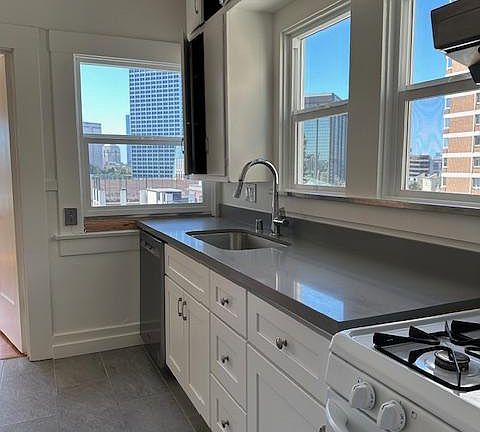 Large, 970 Sq ft, Top floor apartment available immediately; great light, windows on 3 sides with incredible views of Lake Merritt, downtown Oakland and beyond. Lots of charm. Central hall plan with remodeled full kitchen with dishwasher, large bedroom, separate living room, dining room and sunroom/office space. High ceilings throughout, original woodwork. Dining room has pull out bed - for guests or as a second bedroom. Big hall closet plus bonus walk in closet off of the bedroom- both offer lots of storage space. Smart phone operated washer/dryer in the building. One secure off street parking space available for additional $150/mth. Located on a quiet, safe street with easy access to restaurants, cafes and shopping. Convenient 10-minute walk to BART; one block walk to Whole Foods and Lake Merritt Fairy Land; 4 blocks from Grand Lake Theater, Trader Joe's, Sunday farmer's market. Unit available March 15. One year lease. First months rent: $2950 and dep of $2950 required for move in. Owner pays water & garbage. Tenant pays PG&E, wifi and cable. Showing by appointment. Showing by appointment. Please email posting with info about yourself, anyone else you are planning to move in with, projected move in date and pets if applicable and for more information. Include your cell number. Owner pays all utilities except Electric, Wifi and Cable